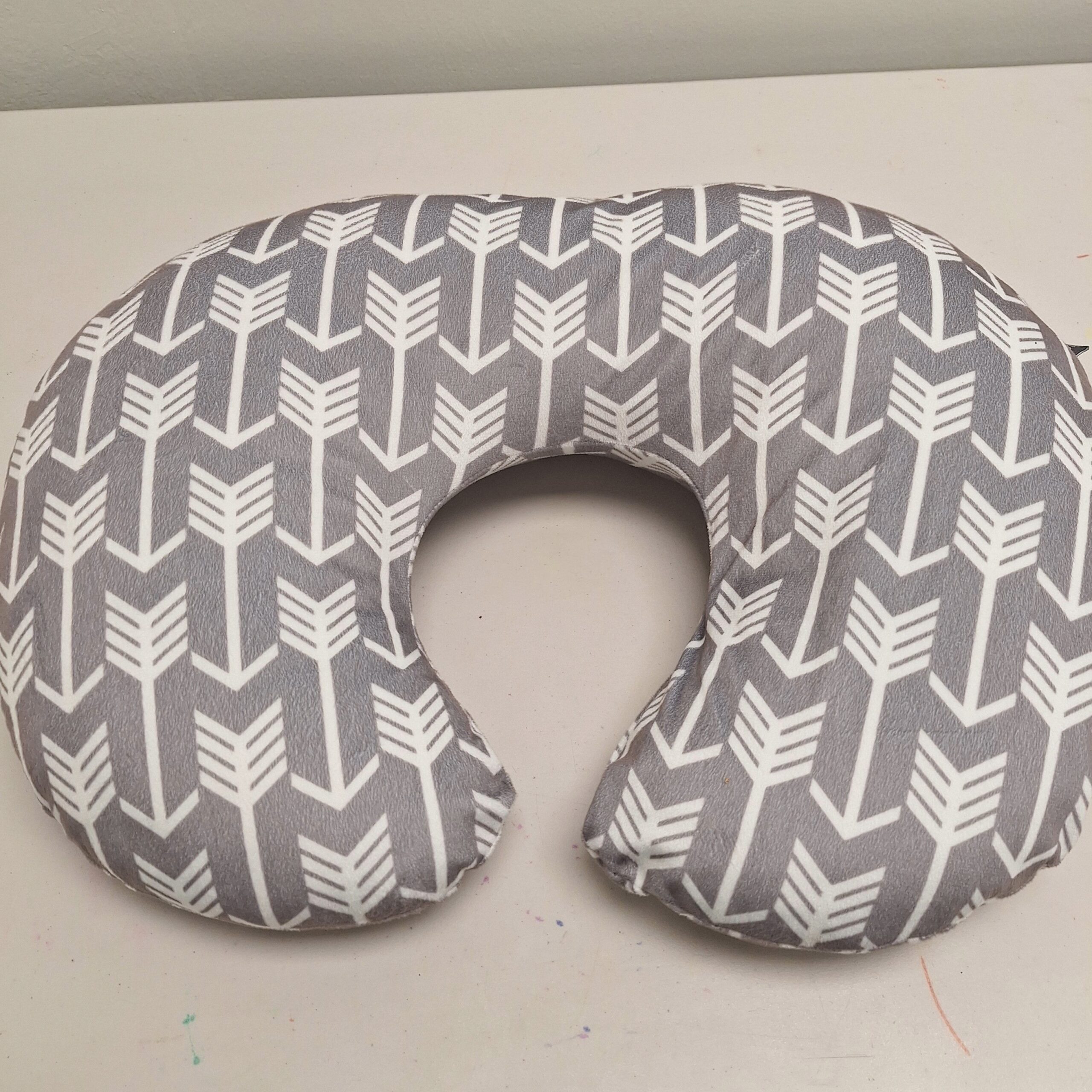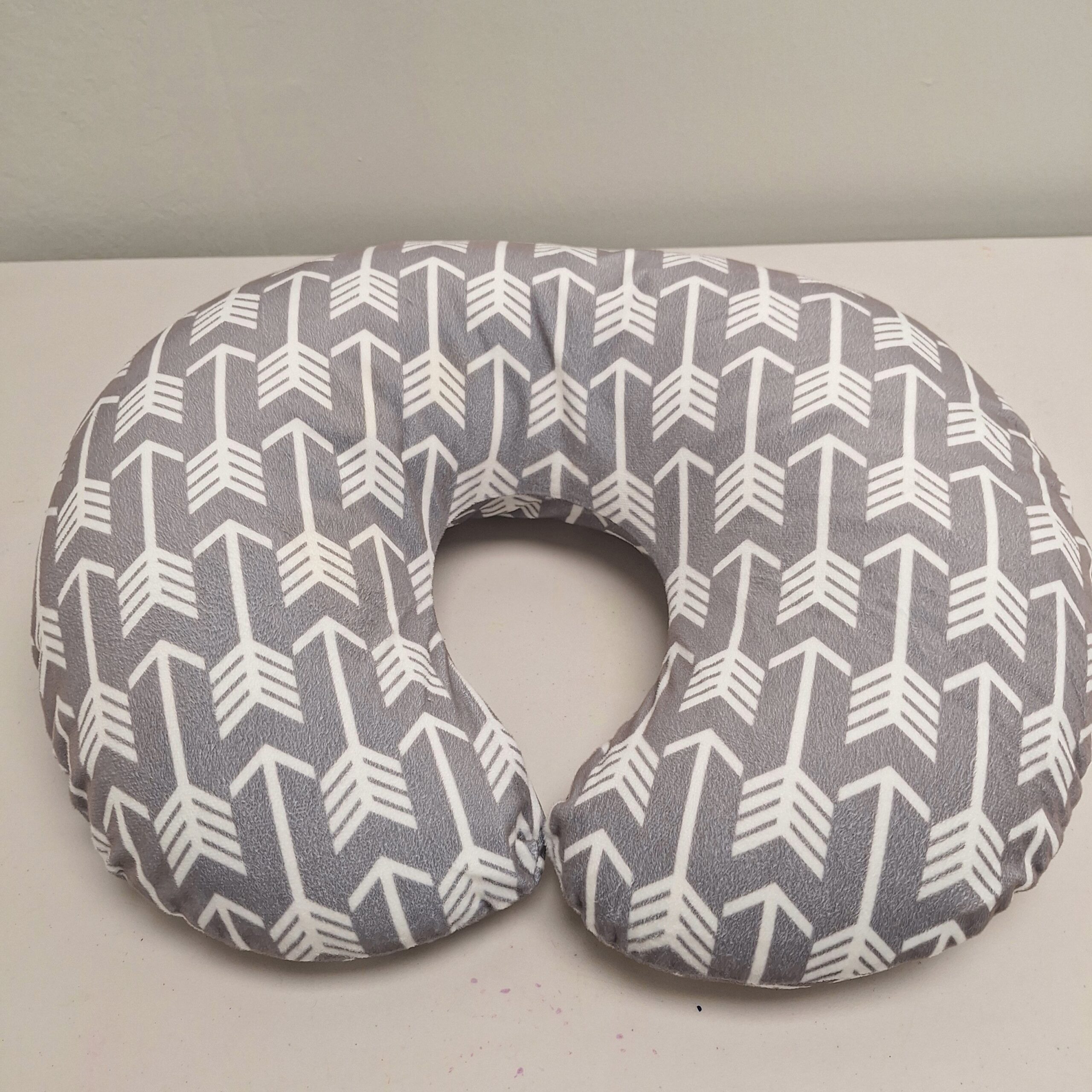 Gray boppy pillow for breastfeeding women with an arrow pattern